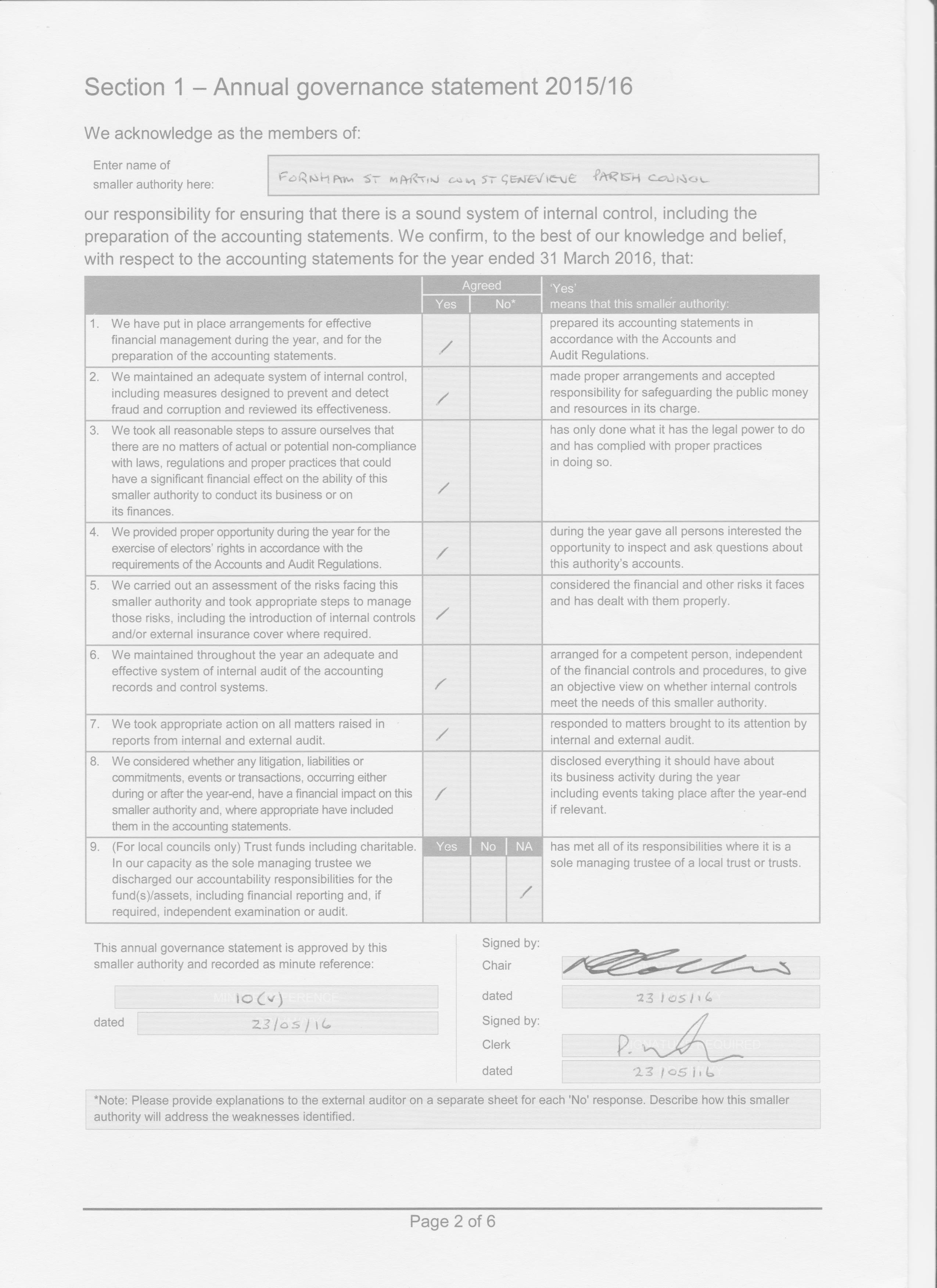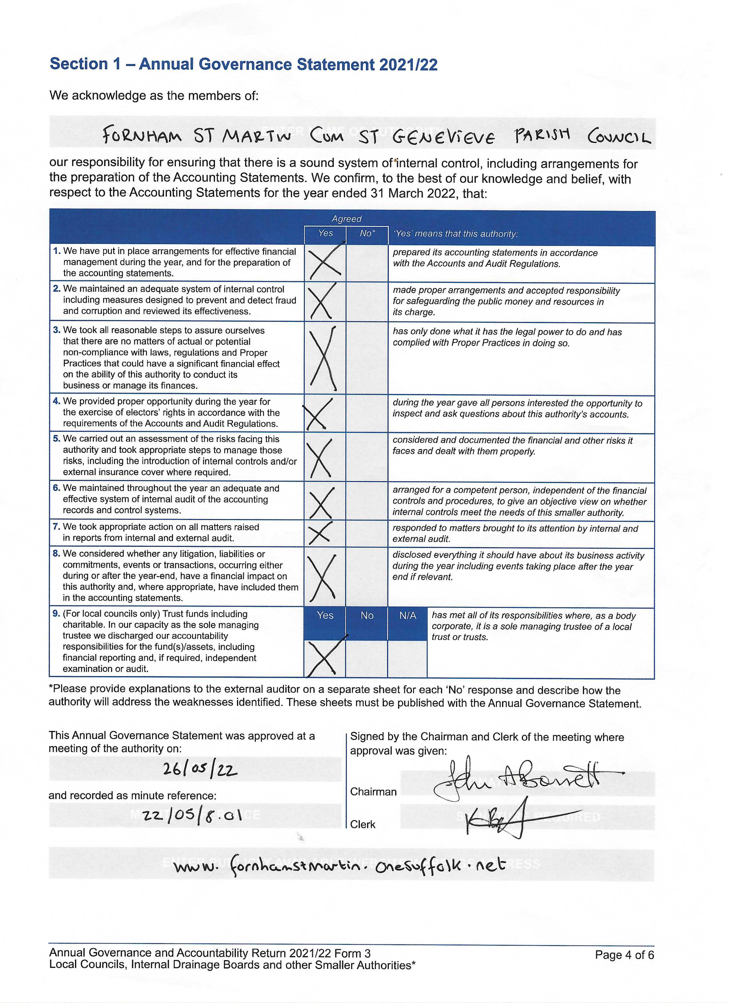 Annual Governance Statement AGAR Section 1 2021 22 001 (jpg)