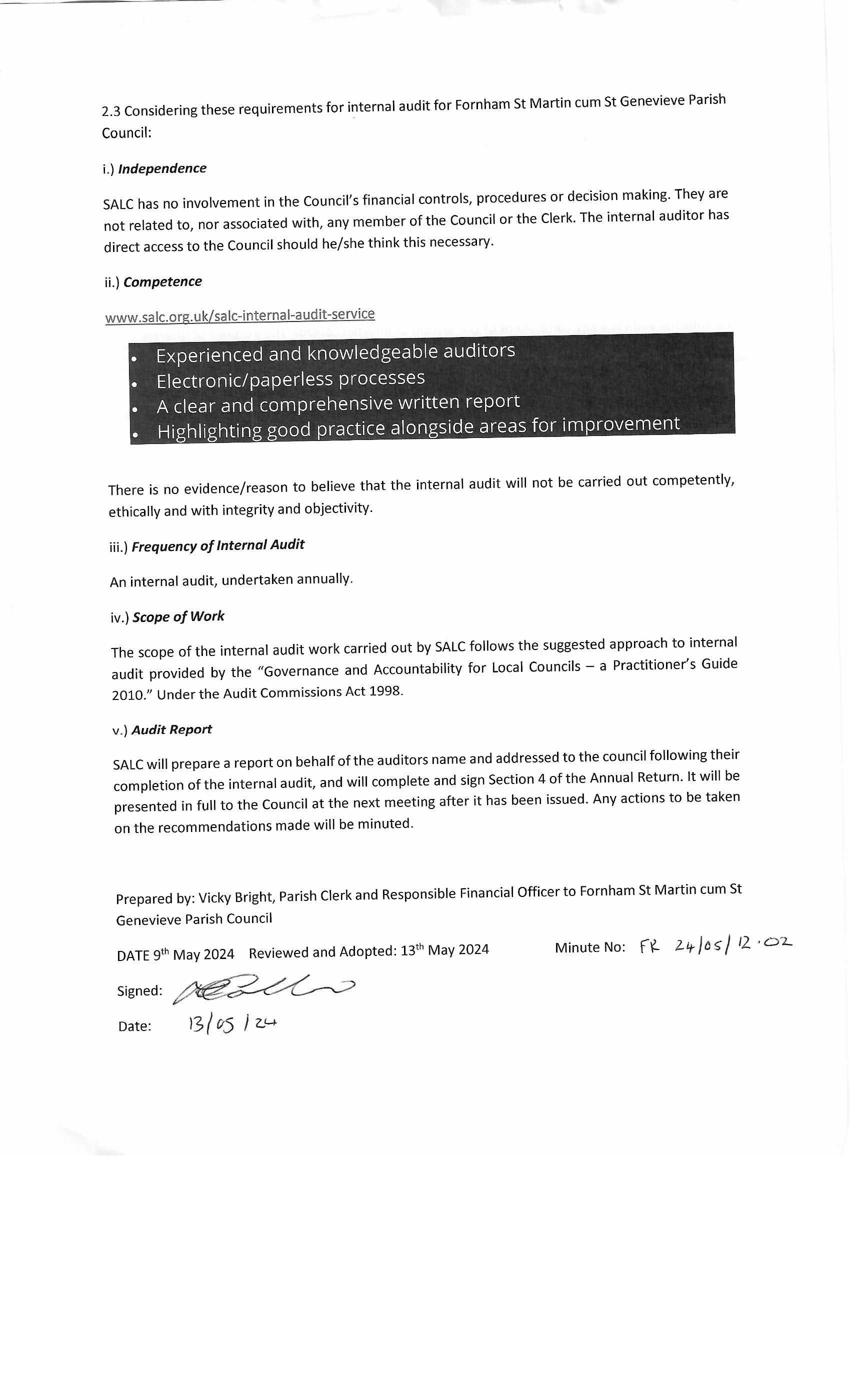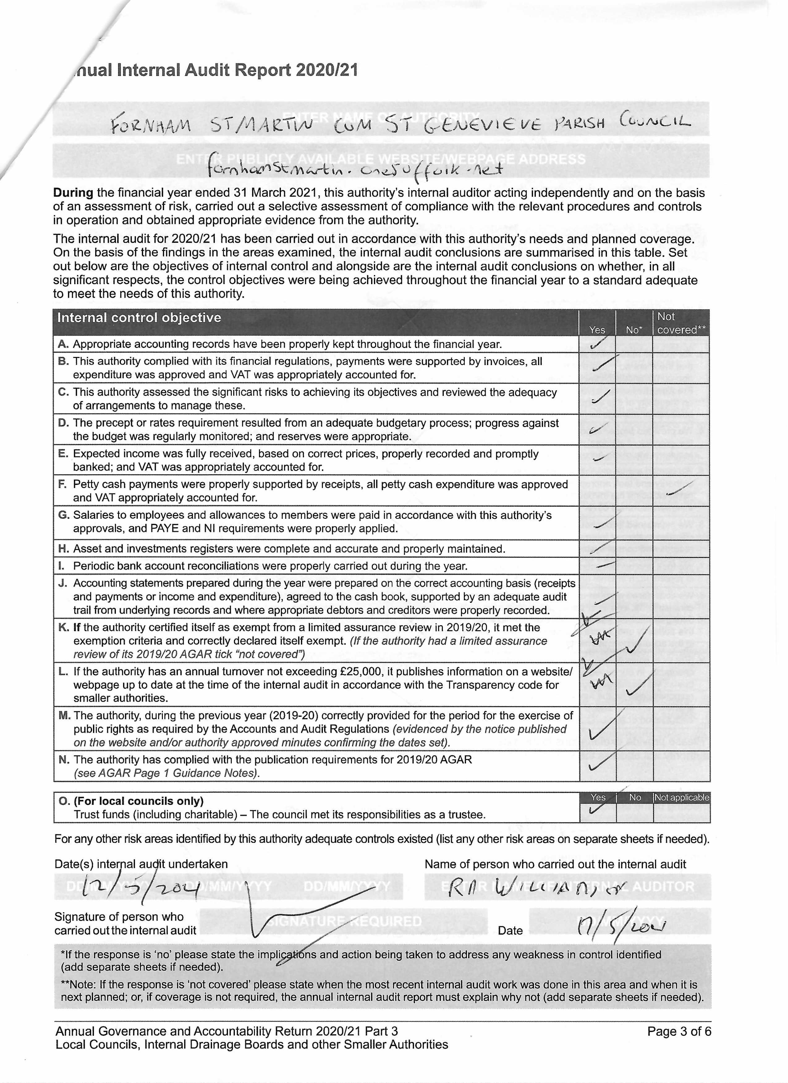 Fornham St Martin Internal Audit Report 2021 Mijan Ltd (pdf)