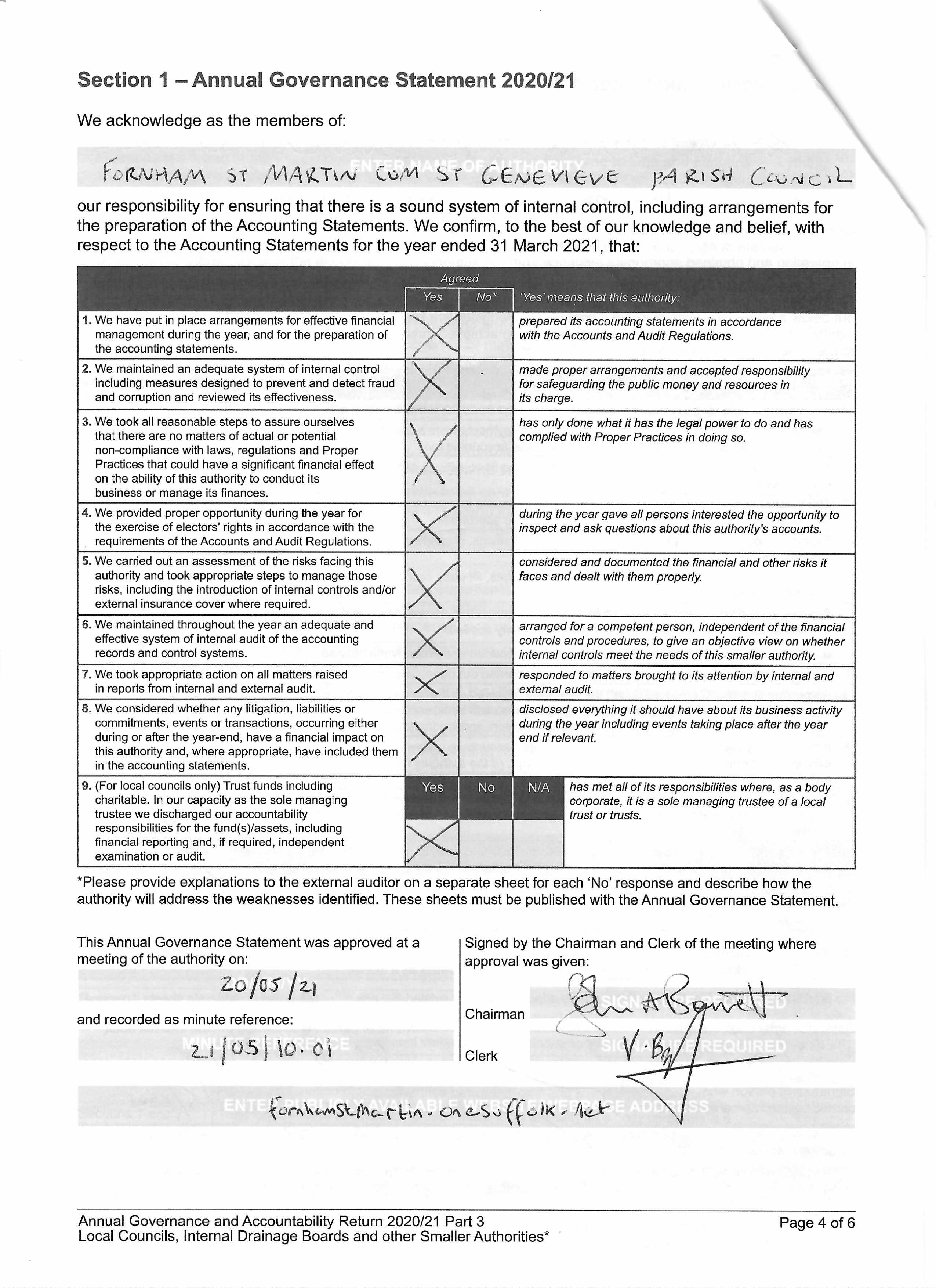 AGAR Section 1 Annual Governance Statement 2020 21 001 (jpg)