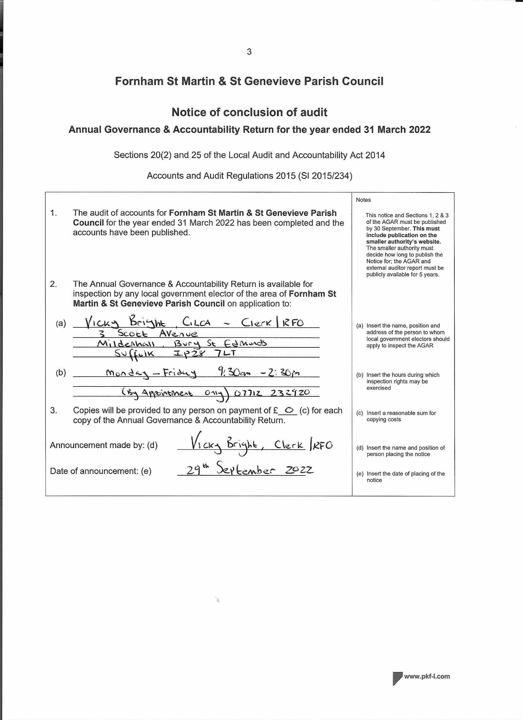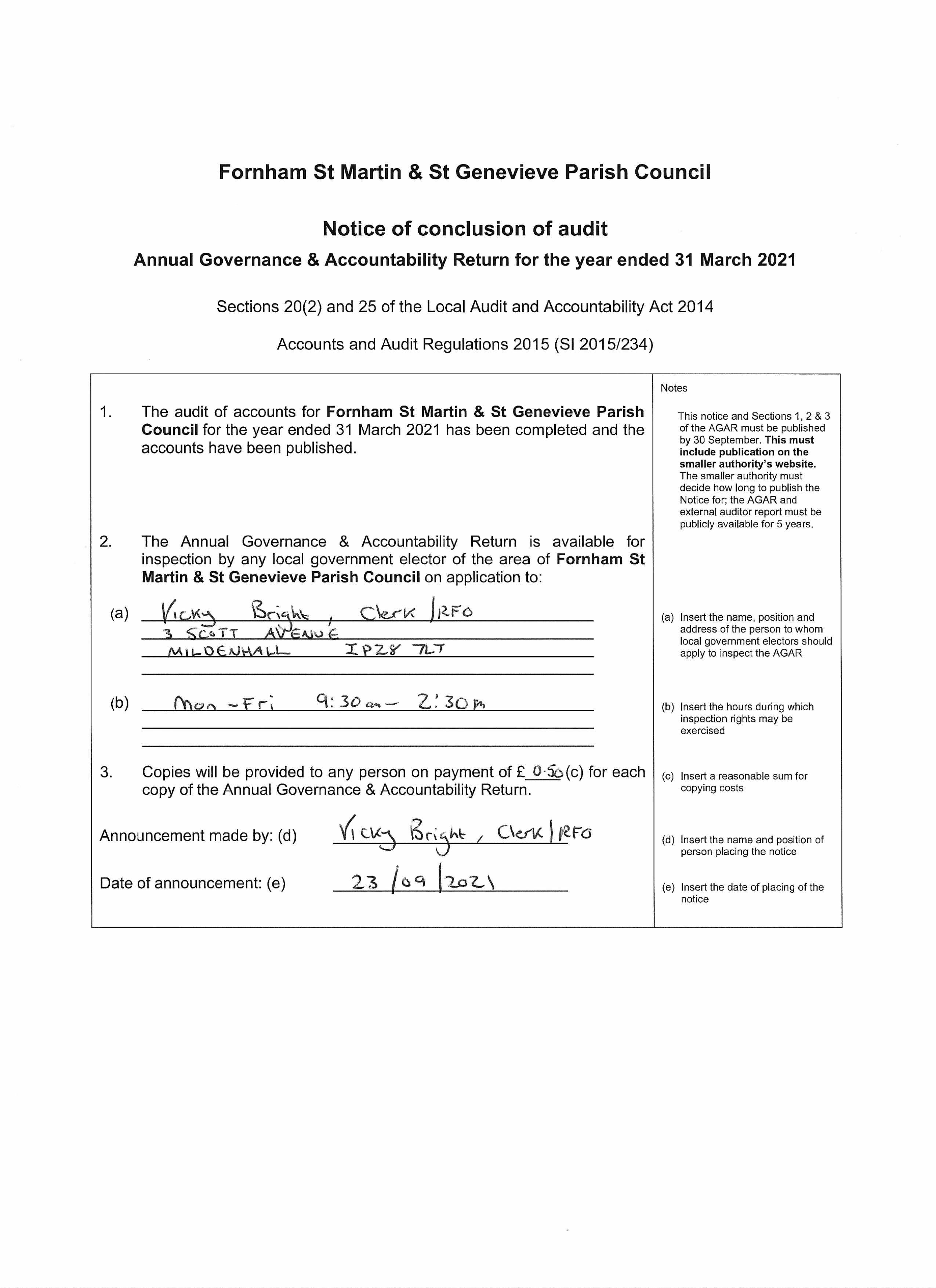 Notice of Conclusion of Audit 31st March 2021 001 (jpg)