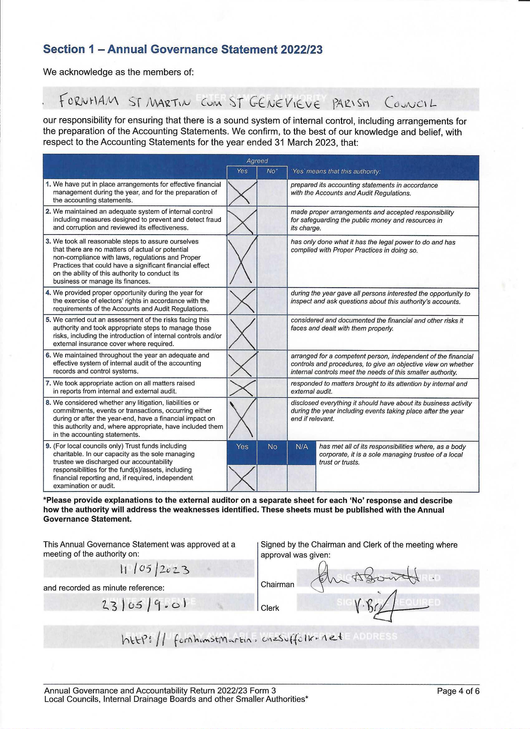 Annual Governance Statement AGAR Section 1 22 23 001 (jpg)