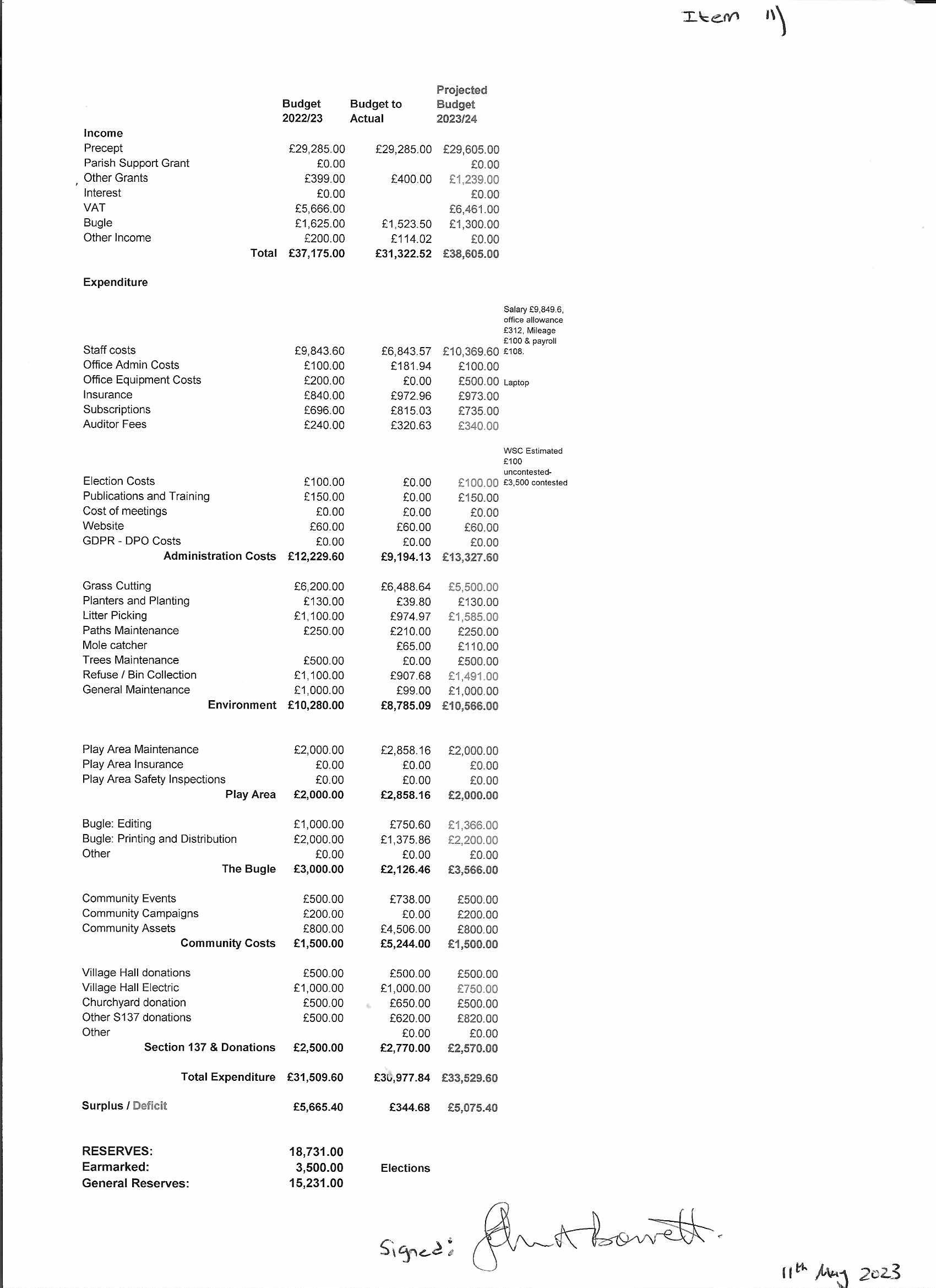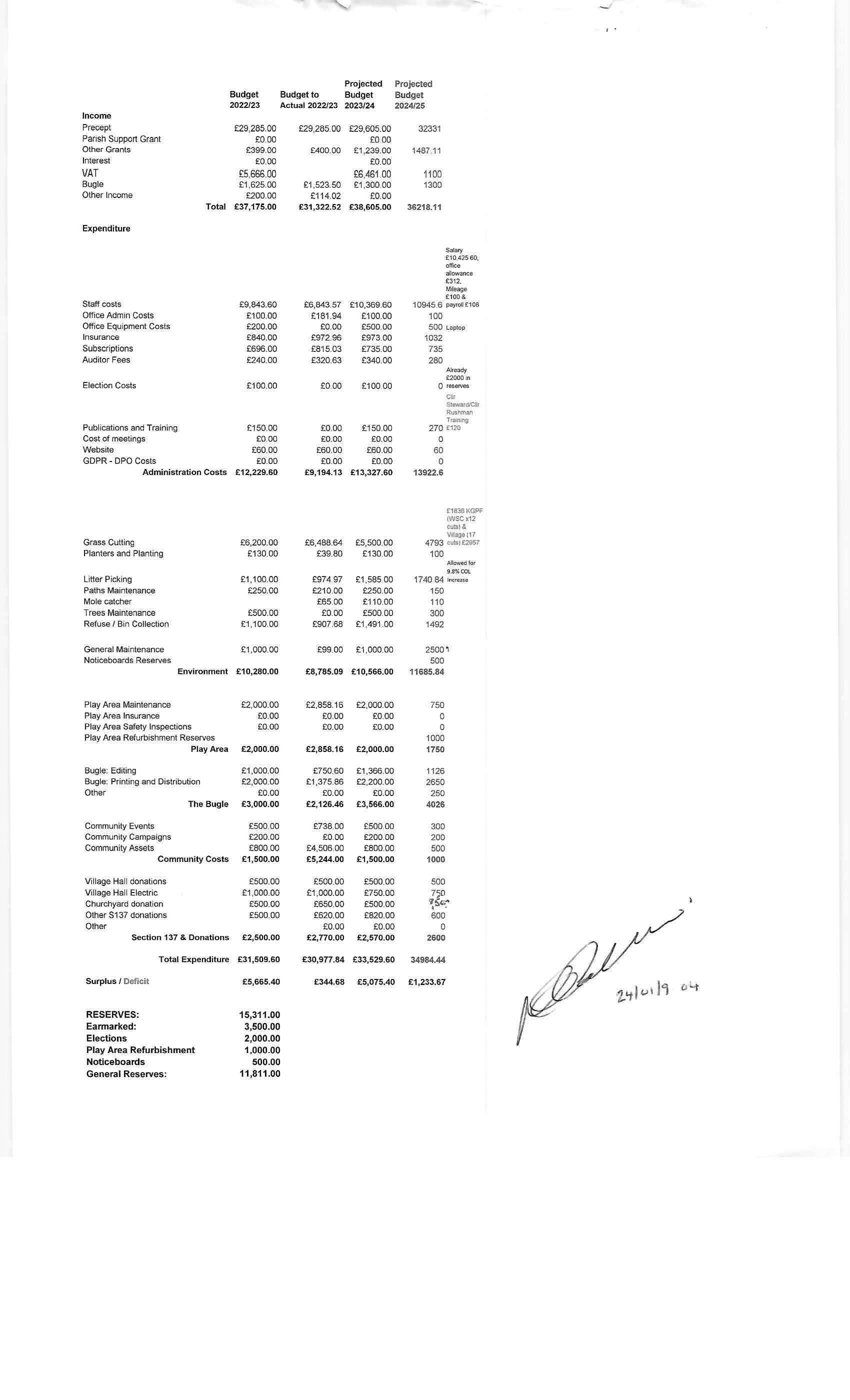• an explanation of any significant variances in the statement of accounts between the relevant year and the previous year (usually available following the Parish Council meeting in May)