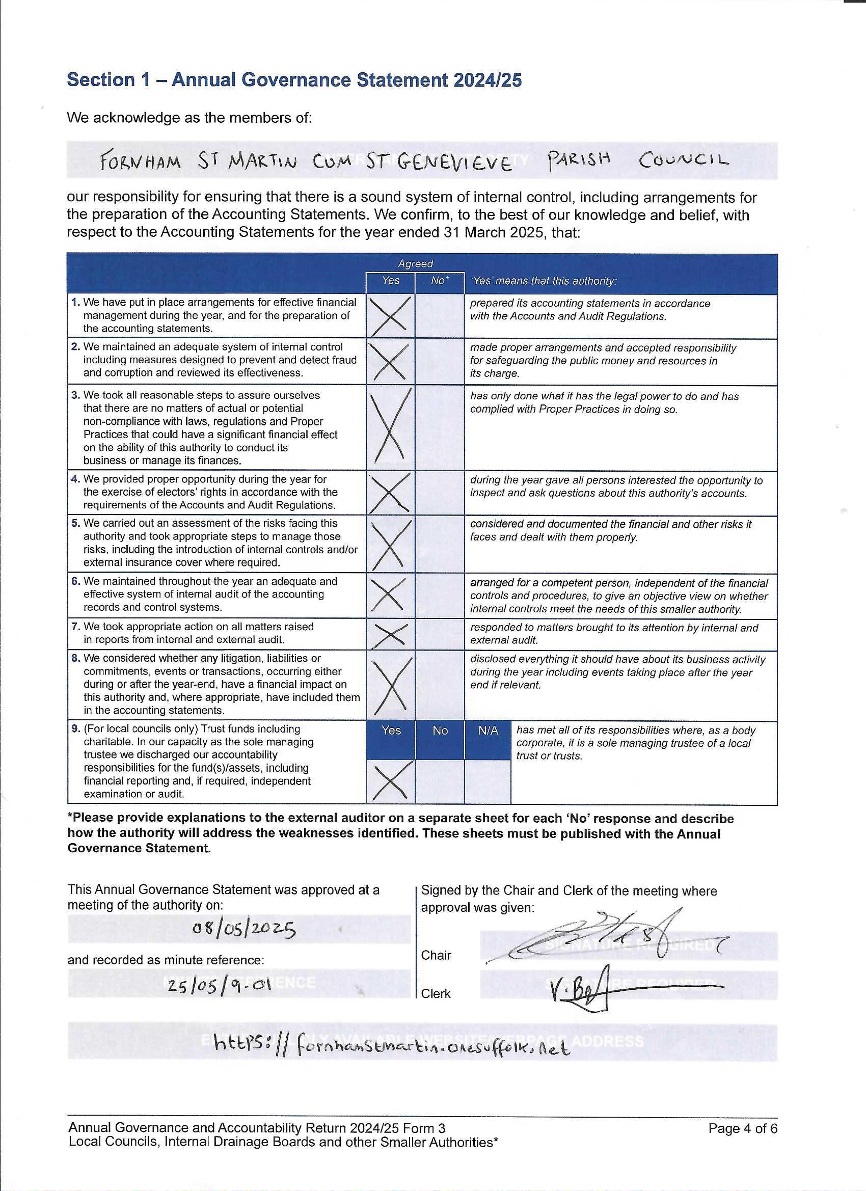 AGAR Section 1 Annual Governance Statement 2024 25 001 (jpg)